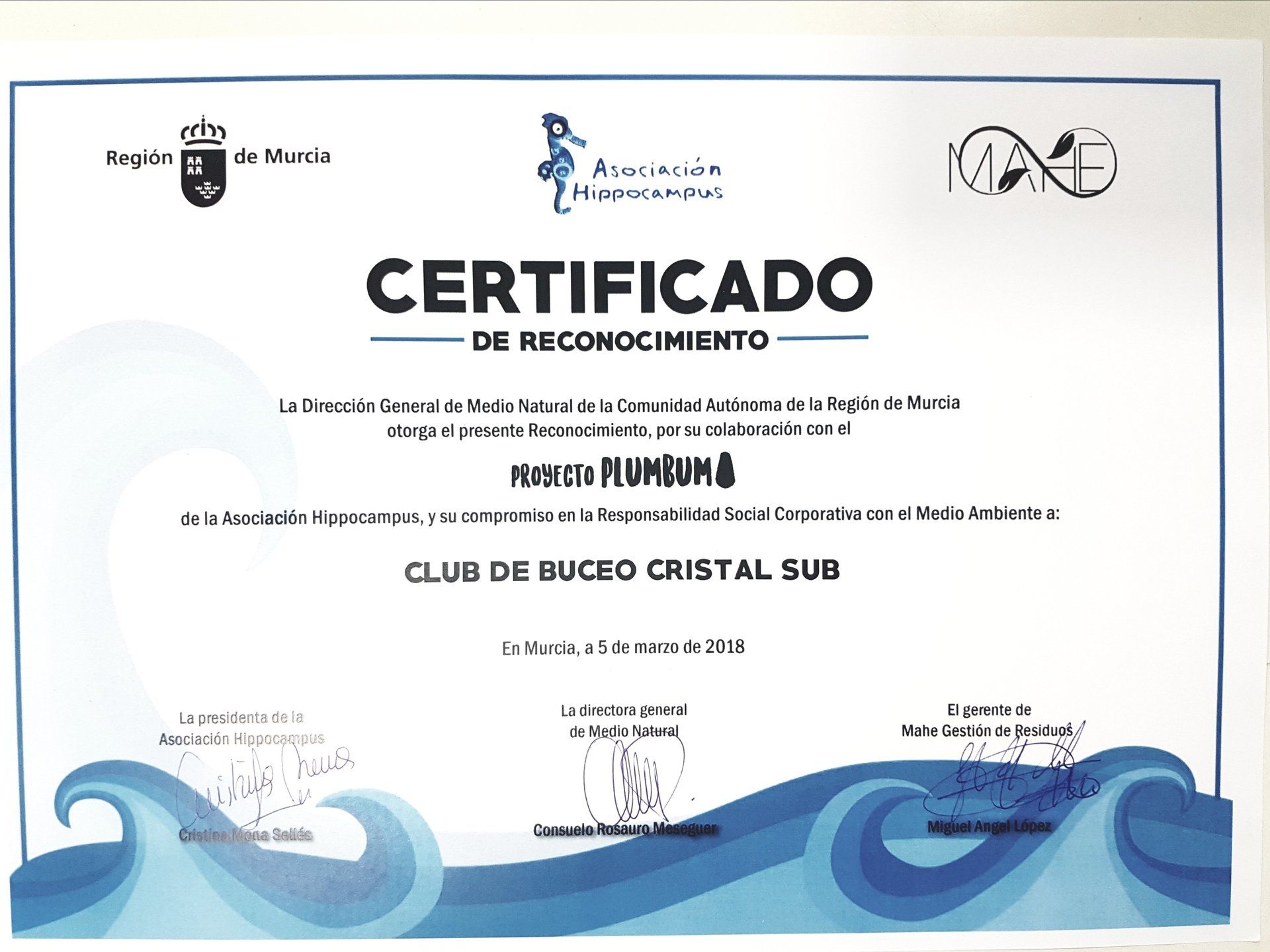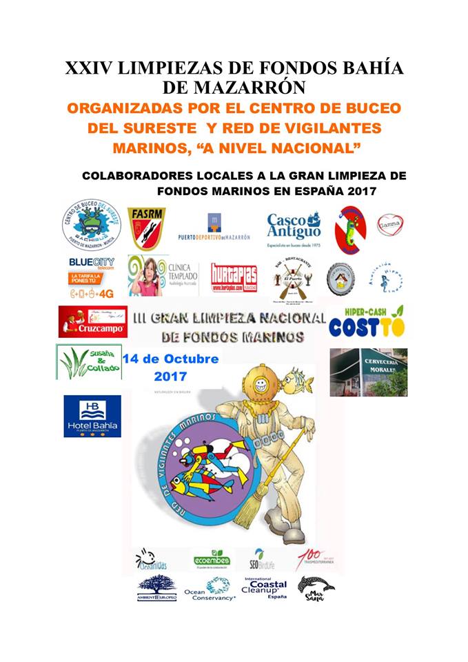- Octubre 2019, Limpiezas de Fondos Mazarrón. Nuestro Club de Buceo comprometido con el medio ambiente participa de nuevo en las limpiezas que organiza el centro Bachisub. Podéis ver más fotos e info del evento en nuestro facebook.
