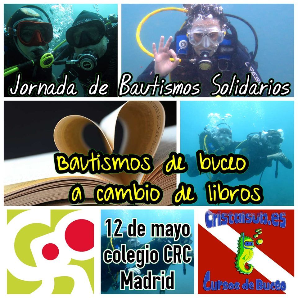 - Mayo 2019, Bautismos de buceo solidarios a cambio de libros. Nuevamente en el colegio Ramón y Cajal de Madrid estuvimos toda una mañana acercando a muchos padres y alumnos del colegio el mundo de buceo y recopilando libros para donar a una organización. Muy satisfechos con esta nueva acción.