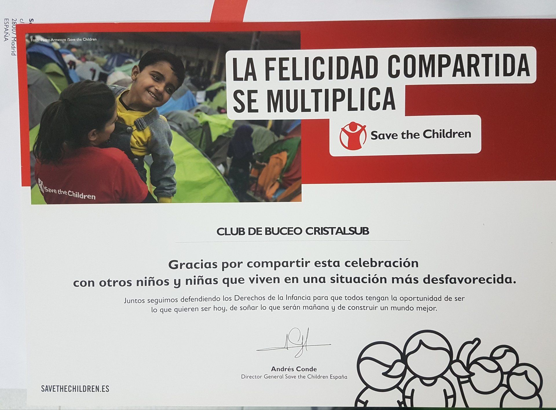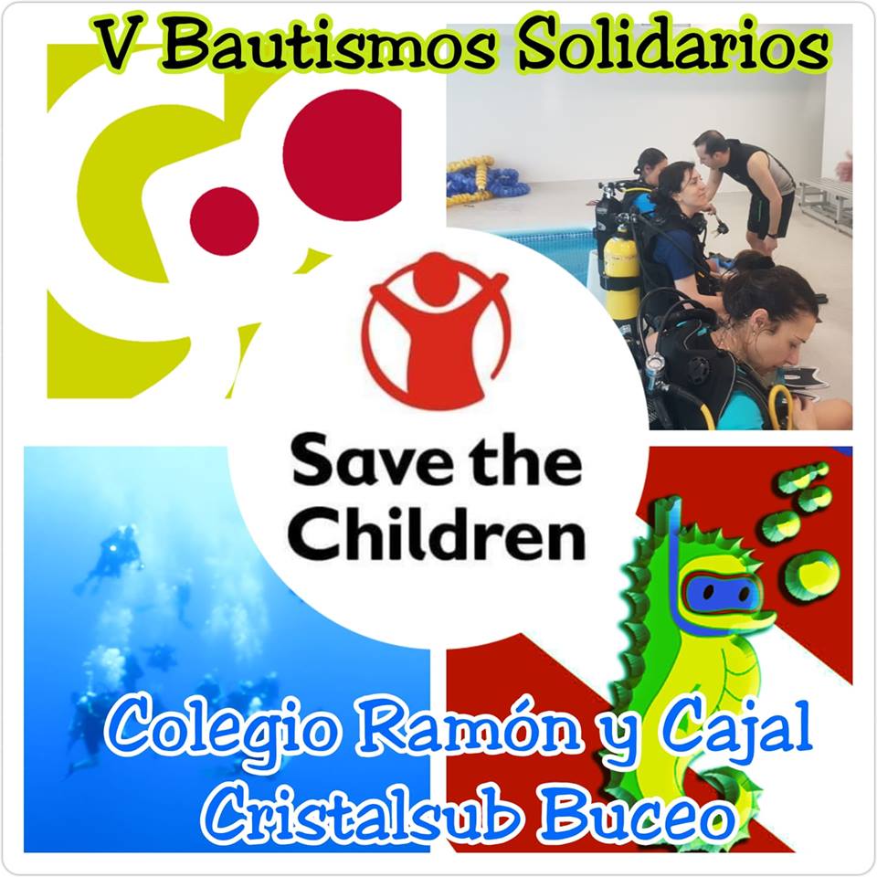 - Octubre 2018. Junto con los Colegios Ramón y Cajal de Madrid realizamos las V jornadas de bautismos de buceo Solidarios. En esta ocasión lo recaudado irá destinado a la organización Save the Children.