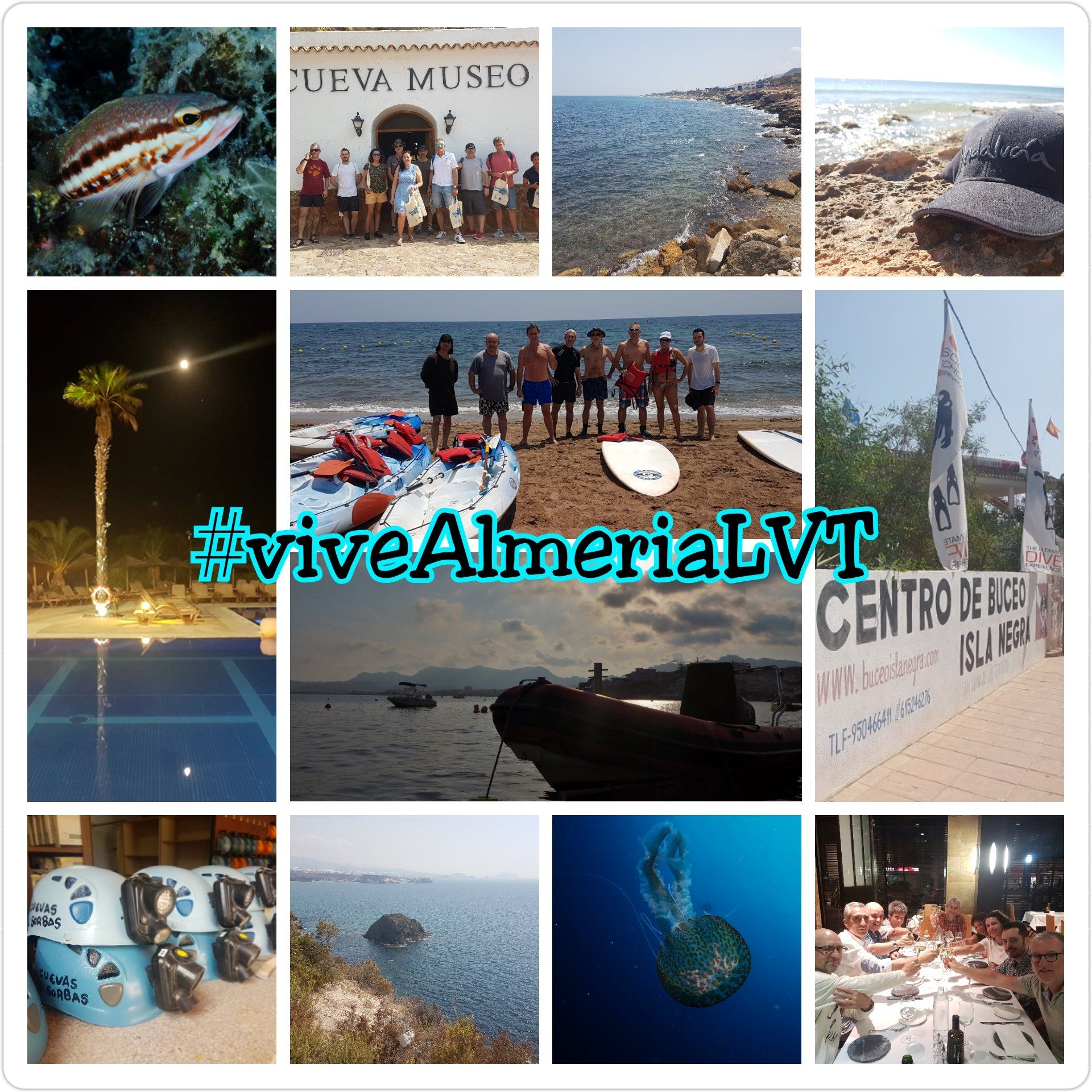 Nuestro club de buceo ha tenido el placer de colaborar en la promoción de una de las zonas más estupendas del litoral español, la Costa Tropical . El jueves nada más llegar pudimos disfrutar de una cena en el restaurante los Moriscos (Motril) junto al omnipresente mar y disfrutando del reflejo de la luna en las calmadas aguas que nos auguraban unas inmersiones maravillosas. El viernes a primera hora nos trasladamos a Castell de Ferro, donde nos recibió Antonio Jódar en su centro de buceo Aquamarina . Nos embarcamos en su lancha semirrígida para hacer las inmersiones de La Laja y La Rijana tras pocos minutos de travesía. Ambas inmersiones son súper interesantes con paredes forradas de coral naranja , repletas de vida marina. Multitud de nudibranquios y planarias , bancos de espetones y bogas , algún que otro congrio e infinidad de anémonas . En la inmersión en La Rijana , pudimos disfrutar de varias ventanas en la roca permitiéndonos pasar a través de ellas. Estos túneles son de pocos metros de longitud y son muy fáciles de atravesar. Es impresionante contemplar las paredes repletas de falso coral y apreciar la belleza que los contraluces generan. Durante las inmersiones encontramos también multitud de peces de menor tamaño como castañuelas , doncellas y fredys que nos acompañan durante toda la inmersión. Nos comenta Antonio que en estas inmersiones no es difícil encontrar los esquivos peces luna , ya que se encuentra próxima un estación de limpieza. Aguas con mucha visibilidad y una temperatura de 20º a 23º con alguna termoclina. Después de las inmersiones pudimos recobrar energías en el restaurante La Barraca en la playa naturista de Cantarriján . Siguiendo en nuestro adorado Mar por la tarde nos dirigimos al puerto deportivo de Marina del Este donde embarcamos en el velero RO 400 de SailandSea para disfrutar de una travesía. La mañana del sábado nos esperaba más agua, ¡somos buzos! En la localidad de Otívar nos esperaban los chicos de la empresa Salta Ríos esta vez para ir sobre el cañón del río Verde. Sin casi tiempo para un café regresamos a Castell de Ferro donde Antonio nos esperaba para una inmersión vespertina . Nos dirigimos en coche hasta la zona de levante de la playa de Calahonda . Entramos en el agua desde la playa para disfrutar del veril de la Punta de Cerro Gordo (en el término municipal de Gualchos/Castell de Ferro ). Como en el día anterior, preciosa inmersión donde la luz del atardecer favorecía la visibilidad bajo el agua y nos permitía disfrutar todavía más, si cabe, de la riqueza y variedad faunística que la Costa Tropical nos ofrece. De nuevo infinidad de invertebrados así como multitud de bancos de peces y ejemplares de mayor tamaño como brótolas , meros , congrios , tordos , escórporas y, como siempre, multitud de pulpos . La cena la disfrutamos en el Restaurante Chiringuito La Sardina , en La Herradura también frente a nuestro amado Mar. En resumen, buceo y una multitud de actividades a cuál más interesante que ponen de relieve la bondad de la Costa Tropical como destino turístico. Sin duda alguna será uno de los destinos de nuestro Club de Buceo para este mismo verano y confío en que lo será para muchos años más. Enrique y Paco Puedes ver más fotos de las inmersiones en el vídeo .
